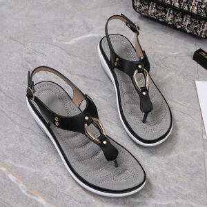 The cushion-like, double-padded memory foam insole is very soft. And the sandal is easy to combine.